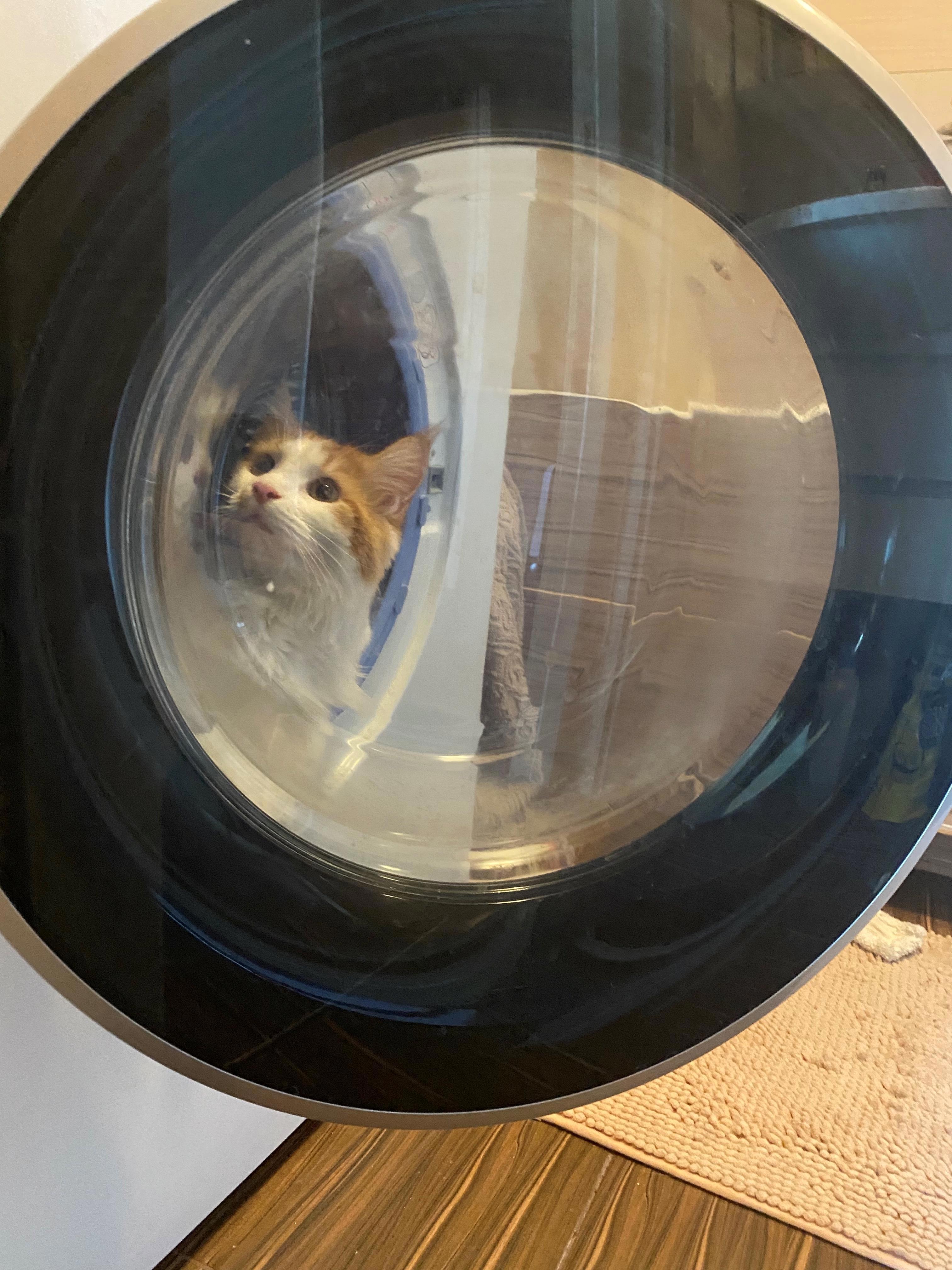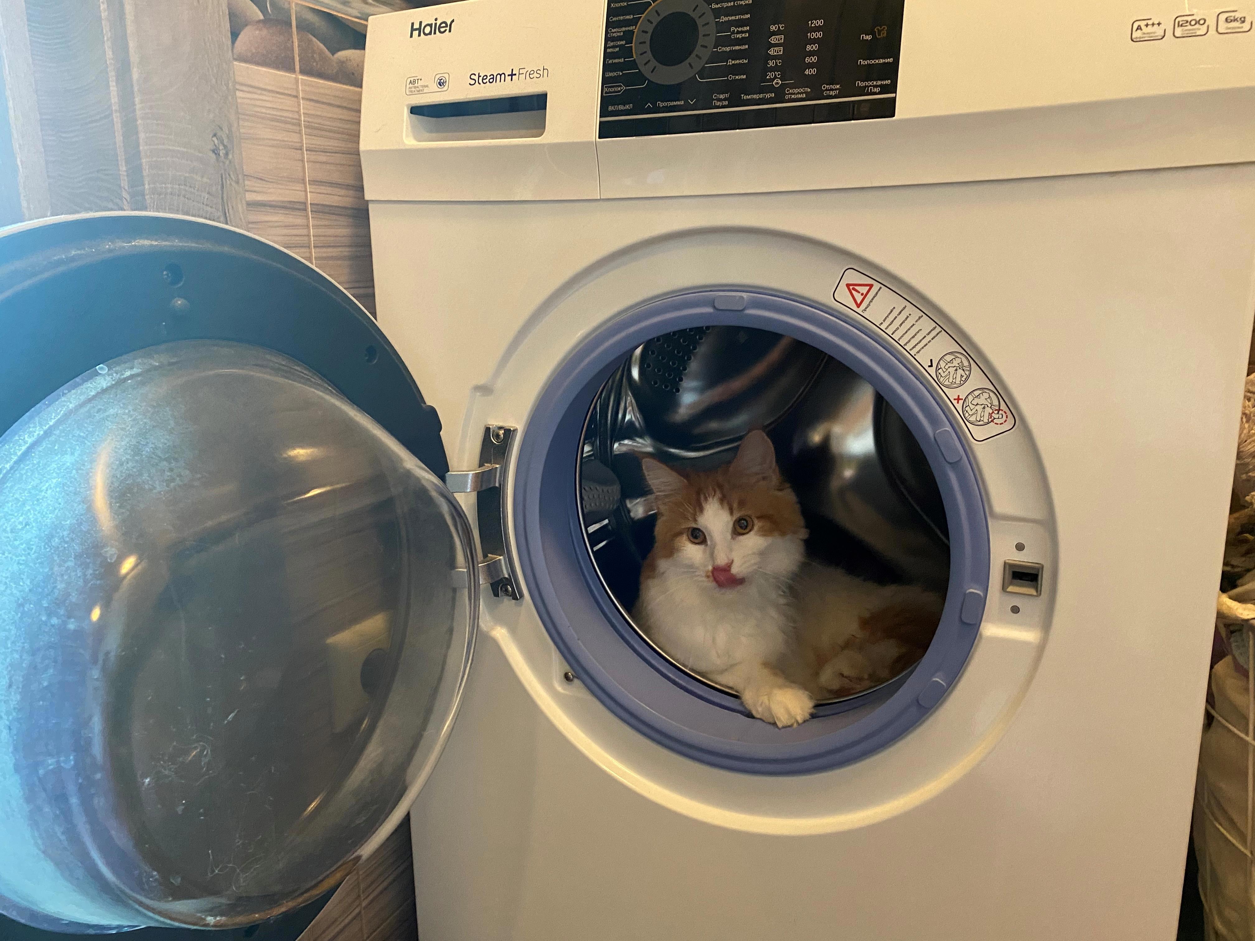 Автор: Анастасия ЖурбаКнопка с самого утра занимается уборкой, в основном, стиркой. А вы трудитесь?