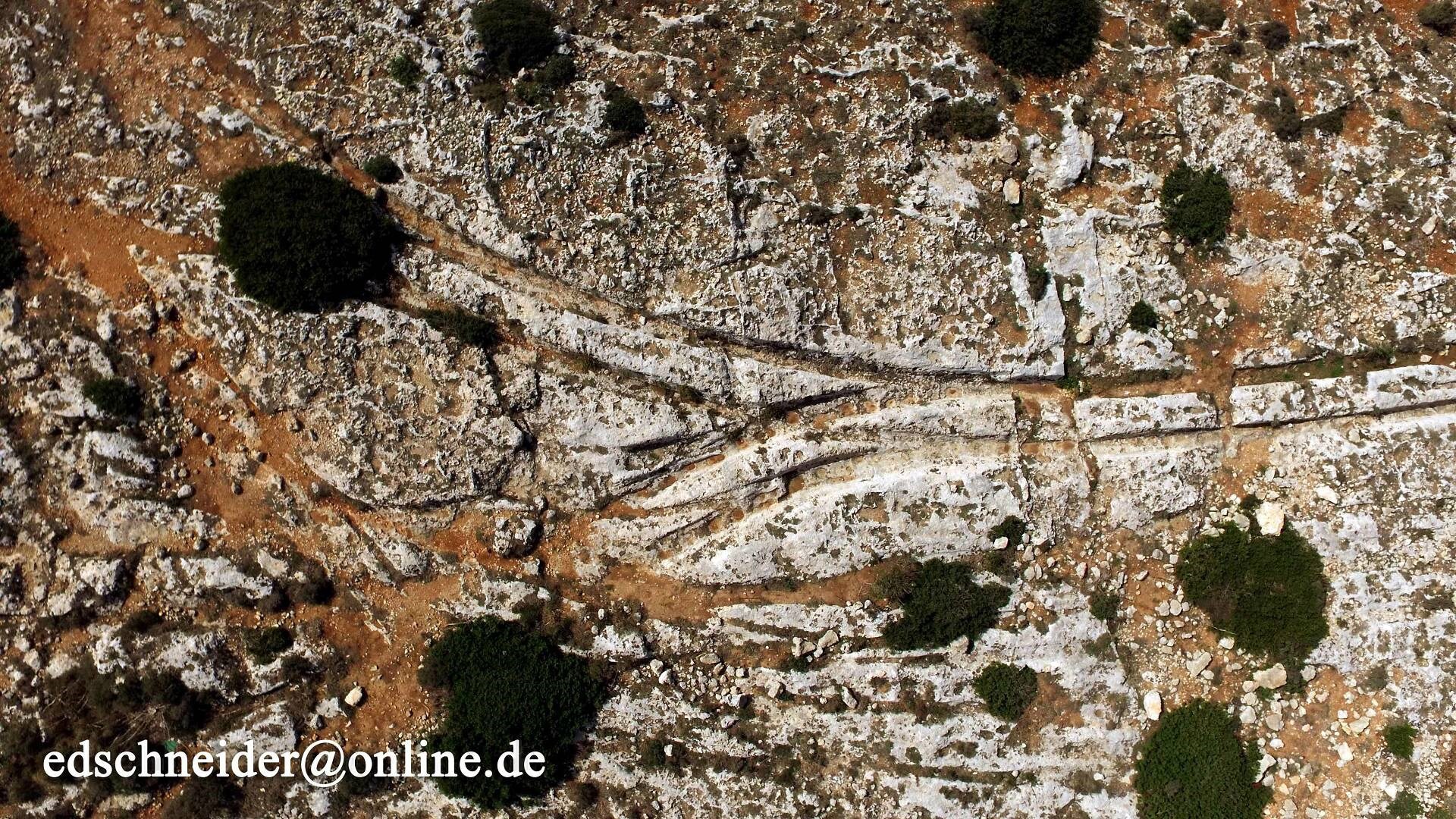 Бессистемные следы от каких-то транспортных средств на островах Средиземного моря – это, разумеется, интересно, но это ещё не все загадки. Люди пытались понять, суть всех этих перемещений, но кроме морского направления удалось выделить только направление к каменоломне на острове. Если бы другой конец дороги упирался бы в какое-то большое строение, то всё было бы ясно, так ведь нет! Нет такой древней великой стройки, на которую возили материал для строительства, и даже маленьких строек тоже нет. Отдельные следы в отдельных местах выглядят только как исключения из общего правила. Я имею в виду вот такие одинокие колеи: