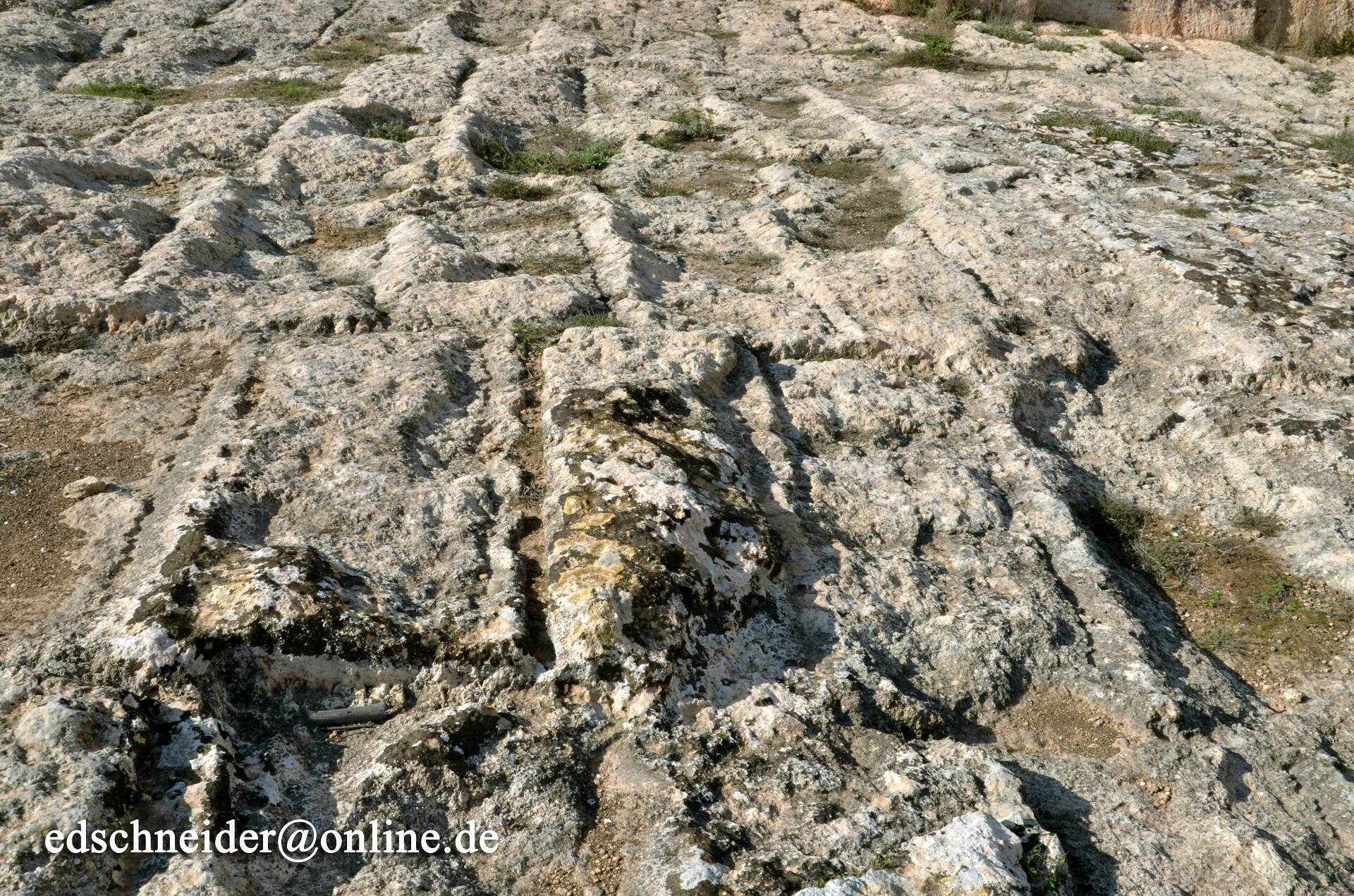 К сожалению исследований всех этих следов почти не ведётся. Хотя есть исключения. Вот фотографии из города Альканьис в Испании. Там проводили раскопки, чтобы колеи откопать, значит: