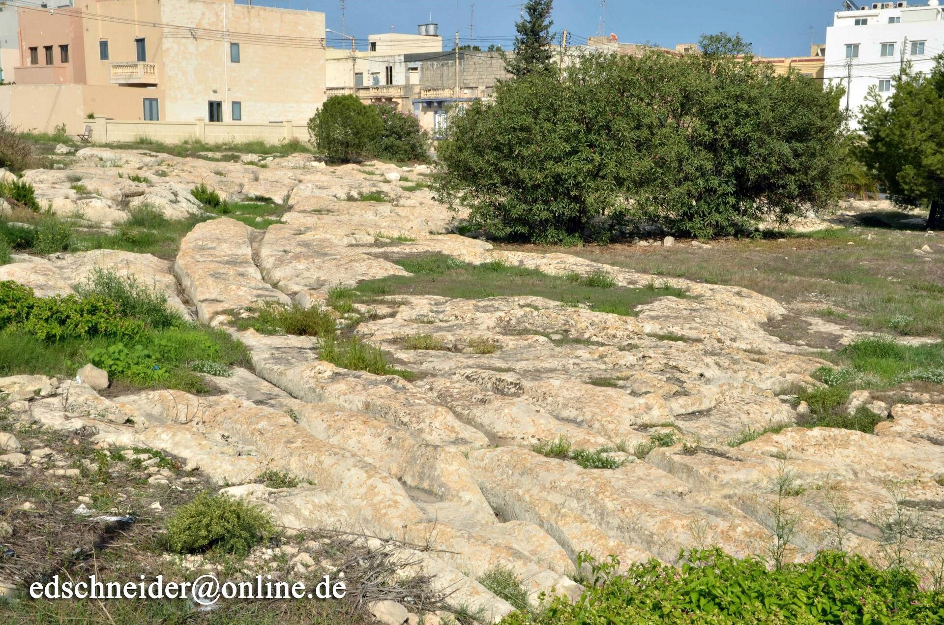 Ну так… следы на островах Мальта и Гоцо историки датировали 2 тысячами лет до н.э. Однако с аргументацией как-то не очень. Поневоле возникает подозрение, что цифра взята по датировке чего-то сопутствующего, то есть по-сути «с потолка». Ещё сильнее такое подозрение укрепляется, когда читаешь, что имеется две только основные версии того, от чего остались следы. Да, именно так, кроме предположения, что это следы неких транспортных средств, есть ещё одно – это следы водогонов систем ирригации… круто! Водогон шириной 10-40 мм. Нет, это – не серьёзно на мой взгляд, как и датировка в 2 т. лет до н.э. Кстати, другие не менее историки датируют следы на Мальте 4-5 тысячами лет до н.э. косвенно подтверждая, что цифры в обоих случаях взяты именно с потолка. Просто нет достаточного обоснования.