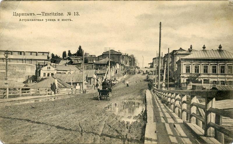 Это первые сведения об Астраханском мосте, получившем своё название из-за того, что он начинался от одноимённой улицы. Версия о том, что название возникло из-за его направления параллельно Волге в сторону Астрахани лично у меня не вызывает доверия - между Царицыном и Астраханью было слишком много населённых пунктов, чтобы нашим предкам пришло в головы назвать Астраханским мост, который находился в четырёхстах километрах от Астрахани из-за его направленности в сторону этого города. Был ли на этом месте мост до упомянутого 1868 года или из Старого города в Зацарицынский форштадт и обратно переправлялись только на лодках, а зимой - по льду, точно истории неизвестно.