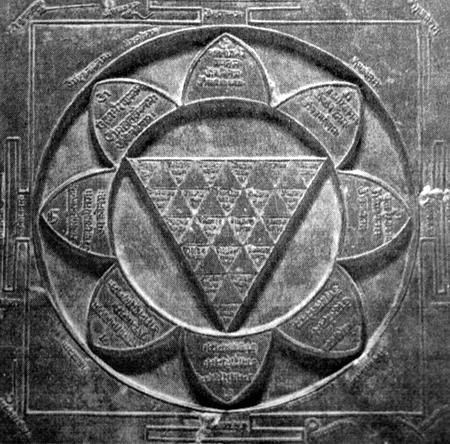 Если взять за аксиому, что узоры – результат работы умелых человеческих рук, то неизбежно нужно решать вопрос о символизме узора. Ведь в древние времена никто не трудился над узорами ради самих узоров. Все «украшения» всегда несли на себе какую-то смысловую нагрузку, сообщая зрителю какую-то информацию о владельце или, например, являясь защитой от каких-то «зловредных персонажей» религиозной основы общества. Исходя из этого предположения и известного факта о чрезвычайной живучести символики, специалисты поискали чего-нибудь в современных источниках. И тут аналоги нашлись в трудах по исследованию космогонии в Индийских Ведах от В. Шмакова, Е. Блаватской, Рерихов. В целом это очень перспективное направление, ведь Индийские Веды в качестве своих истоков называет именно русский север. Однако исследованиям в этом направлении сильно мешает наличие ортодоксальных установок, действующих в современной исторической науке, благодаря которым любые попытки предложить для рассмотрения хоть какие-то гипотезы, связанные с древностью Руси, вызывают прямо-таки истерическую реакцию. Но время лечило заболевания и похуже. Поэтому надежда на спокойную работу по разборке источников Ведизма и связей различных направлений этой системы взглядов на мироустройство всё же пока есть. Вполне возможно, что и следы на Сибирских камнях имеют к этому самое непосредственное отношение. Так это или нет – сейчас трудно судить, ведь сейчас в руках исследователей есть только мелкие фрагменты узоров. Кстати, совсем не факт, что это полноценные законченные работы, а не какие-то бракованные или пробные камни. Но известно, что в Индийских Ведах треугольник является одним из основных символов: