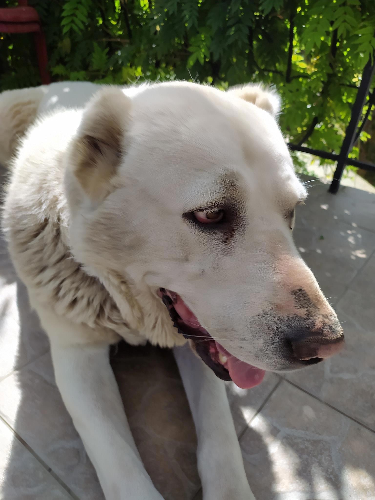 В тёплый осенний денек хорошо алабаю лежать на террасе...Не любит она фотосессии! Еле уговорила немного попозировать.