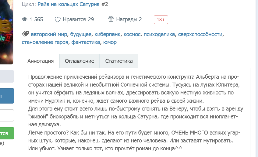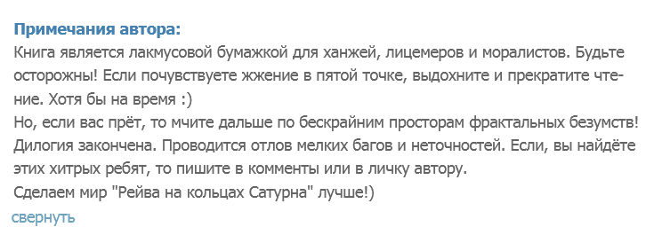 Удивительно, куда заводят читателей твои романы. Особенно в таких необычных формах) Интересно, как читают "Рейв на кольцах Сатурна"? В невесомости? Прыгая от одного мира к другому? Или бесконечно мутируя?