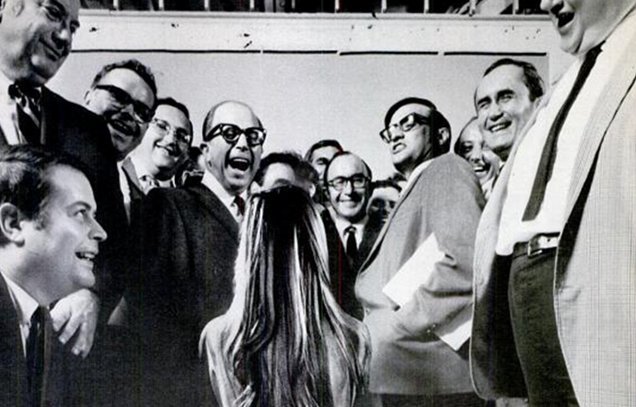 Но вместо девушки на сцену вышла команда мужчин – группа журналистов и маркетологов…