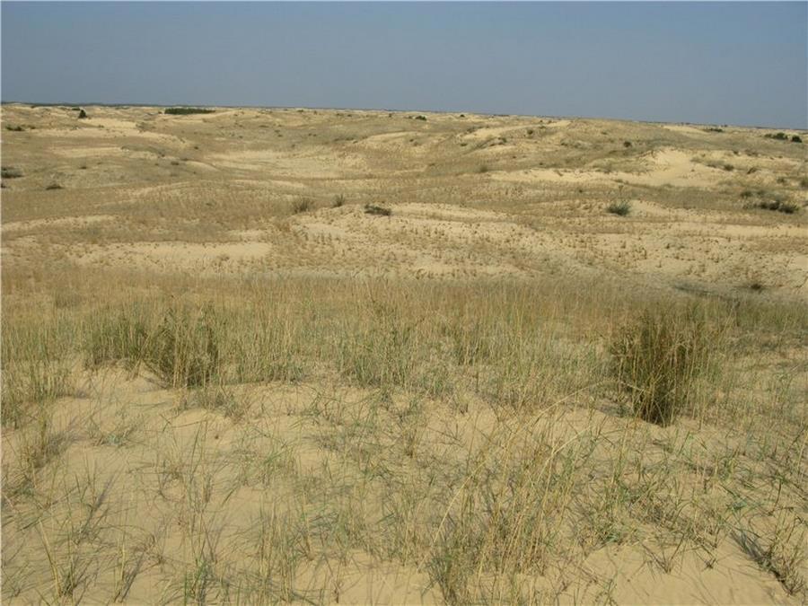 Называется она «Алешковские пески». Диаметр около 15 км., площадь –  160-210 тыс. га. Некоторые барханы достигают в высоту 5-ти метров и дают  жизнь самым неприхотливым растениям. (с)