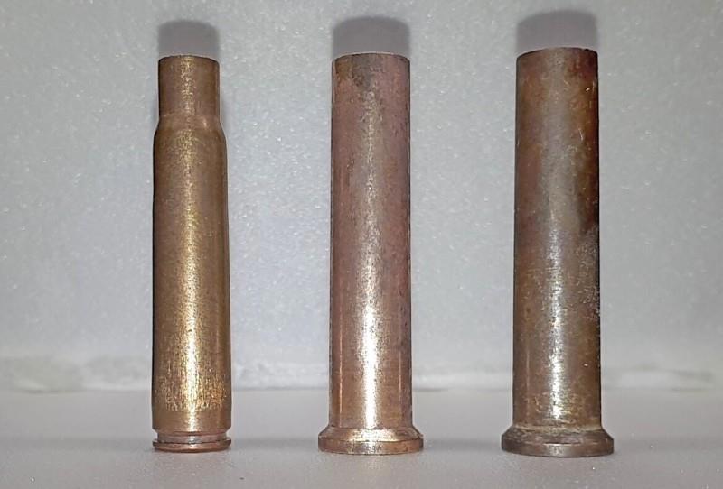 Слева для оценки размера гильза 7.92х57 Маузер 7.92, справа – две находки.