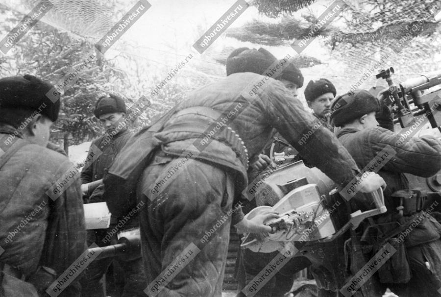 Вот с правого берега Невы (602 батарея 302 дивизиона — как раз 120-мм/50) фотография. Хорошо видно, как замковый вкладывает трубку, и на нем — пояс для трубок: