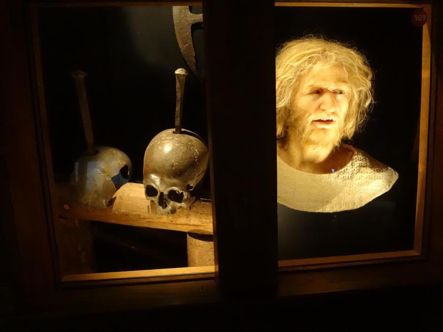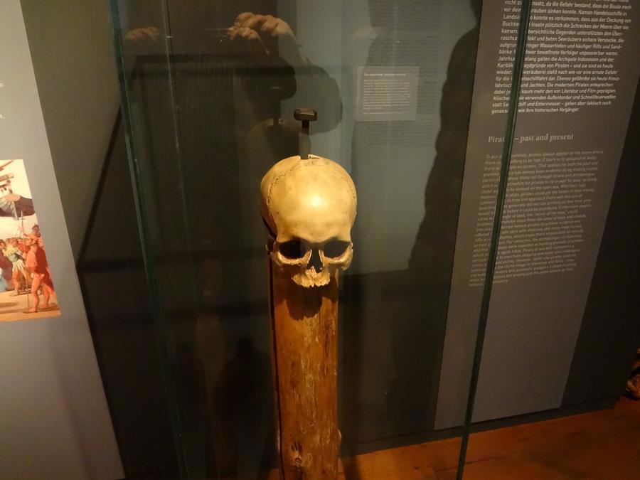 Вот эти выдаются вроде как за головы команды известной рыжей бестии Штёртебеккера, но есть серьезные основания считать, что это все же не они, но тут такое - у черепов не спросишь. Пиратов-то было много. Просто команда рыжего пирата получила широкую известность в связи с феерической легендой о беге обезглавленного капитана вдоль шеренги своей команды - ему пообещали сохранить жизнь тем, мимо кого он пробежит - уже без башки. Пробежал он мимо 9 человек, потом палач подставил ему ножку и труп брякнулся.