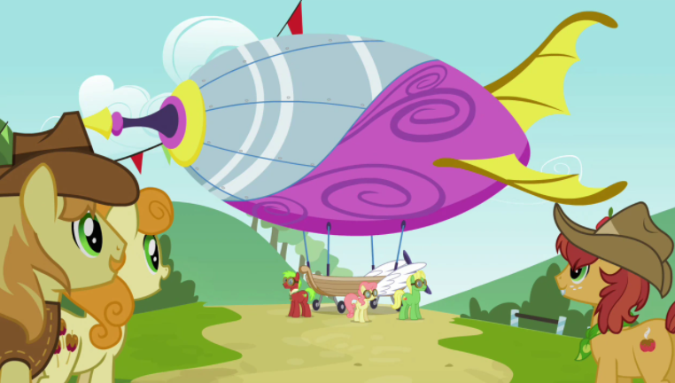 И завершает наш хит-парад чудовище, про которое впору сказать - "Вы прилетели сюда на этом? Вы храбрее, чем мы думали!". Пиратско-контрабандитский дирижабль (нарисованный под стиль 2010-го года), получивший (кажется, от фанатов) название "Щедрость Судьбы", показывает то, что Эквестрия отнюдь не единственная страна, имеющая средства для воздушного передвижения. Как и многое из того, что может показаться серым и неинтересным вначале, дирижабль проявляет себя во время полёта от кораблей Шторма, раскрывая свои крылья.