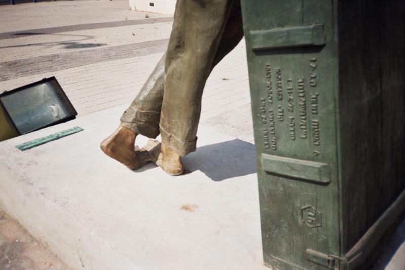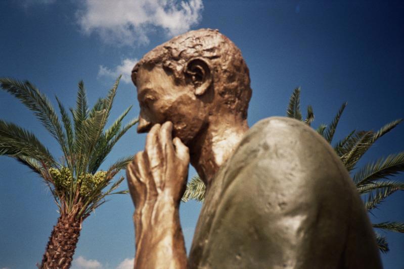 Особенно, если учесть, что скульптурные изображения человека в стране редкость (религия запрещает изображения человеков), а обычные памятники абстрактны или прямолинейны, как памятник первопроходцам в той же Афуле.