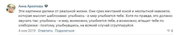 Автор: Анна АрхиповаКто-то сегодня лайкнул мой старый коммент аж за 2019-й год. Я пошла посмотреть, что я там за мысль высказала в мохнатом 2019-м) Оказывается, я комментировала серию картинок с позитивными высказываниями.
