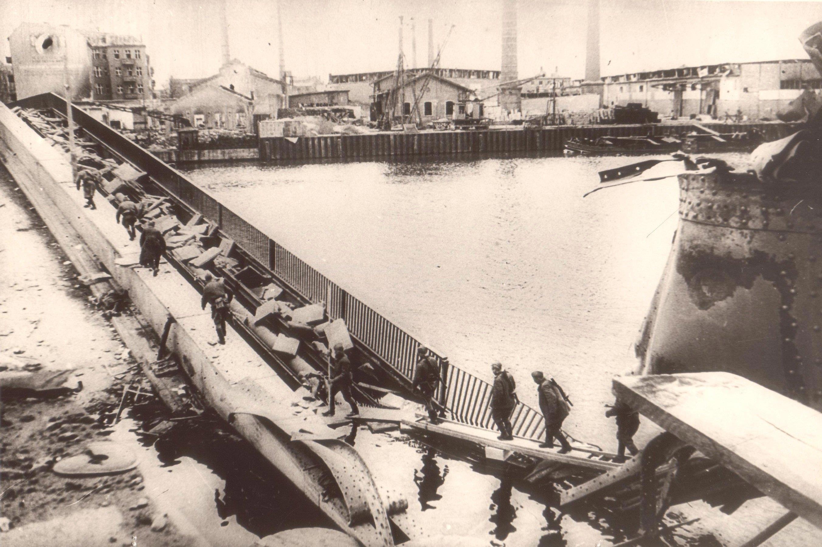 Во время штурма города он остался невзорванным и естественно наши постарались по нему прорваться (если кто не знает - по взорванному мосту не проедут танки и прочая техника).