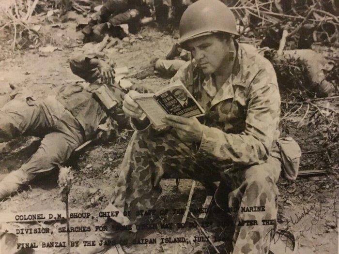 Вот к примеру: Полковник КМП США Дэвид Шуп читает книгу Дэйла Карнеги "Как завоевывать друзей и оказывать влияние на людей". Сайпан, 1944 год.