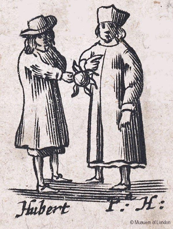 11 сентября в Ромфорде был арестован часовщик Робер Юбер при попытке покинуть страну, он тут же признался в преступлении, его даже толком и не успели пытать. Он был французский гугенот, то есть подходил по всем статьям. Поначалу Юбер сказал, что он поджег Вестминстер кинув туда через окна зажигательные снаряды. Ему пояснили, аккуратно поправив, что Вестминстер-то не горел, а обвиняемый просто принял за него пекарню, с которой пожар и начался. Похожи очень Вестминстер и пекарня, иностранцы их часто путают, дело привычное.