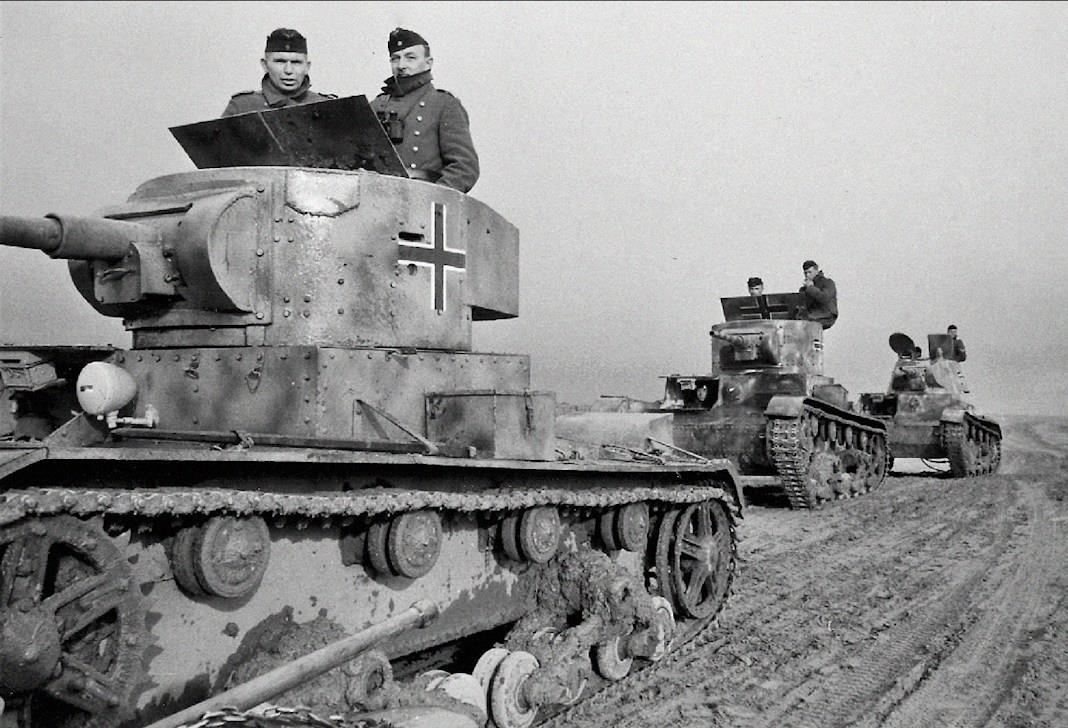 Задумался - в инете полно фотографий трофейных наших танков на службе Рейха. Вот к примеру фото колонны из трех машин - уже с крестами.