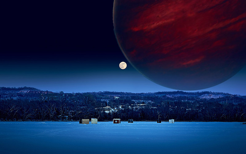 Однако в реальности если сделать Землю спутником Юпитера и поместить её на орбиту Каллисто, где вращается моя Клэр и где радиационные пояса не будут досаждать жителям, то выглядеть это будет всего лишь так: