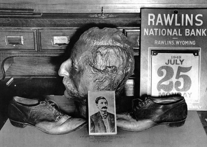 На фото экспозиция в музее Вайоминга - фото того самого Паррота, его посмертная маска и те самые ботиночки.