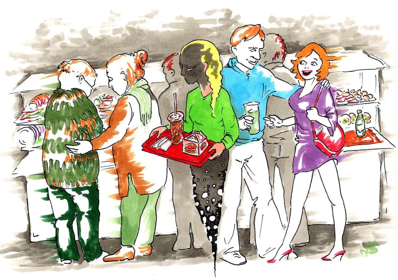 Она уставилась на поднос в своих руках: яркий стакан с шипучим напитком и горячая булочка словно олицетворяли центр вселенной.