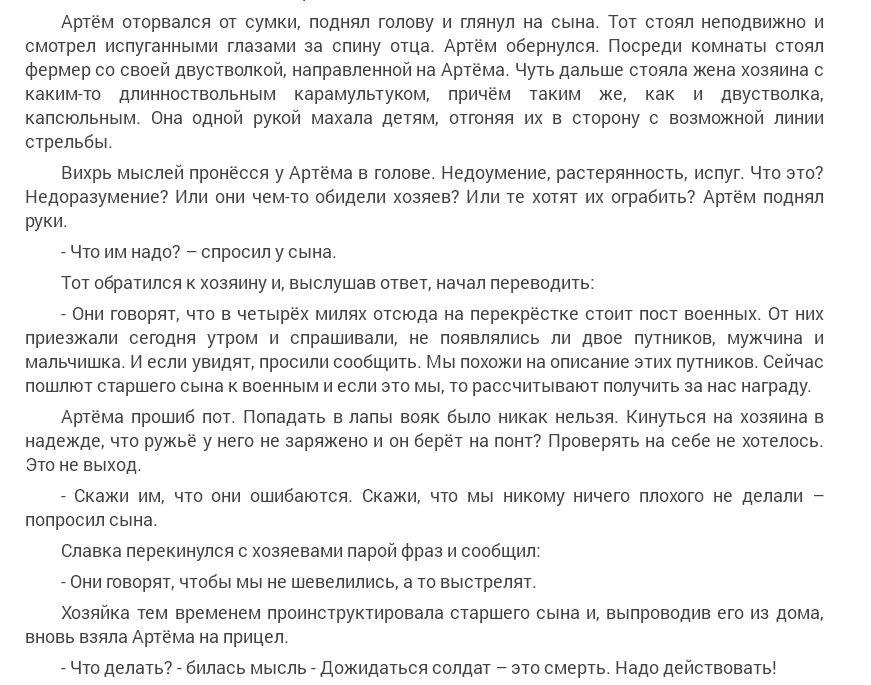 Конечно, нельзя  расписать, что главным героям встретилась вменяемая и умная семья,  давшая  им ночлег и не помышлявшая  о подлости к русским.  Потому что автору  так удобней.