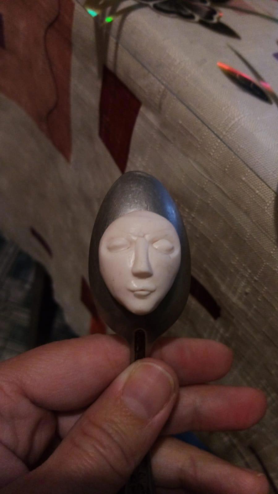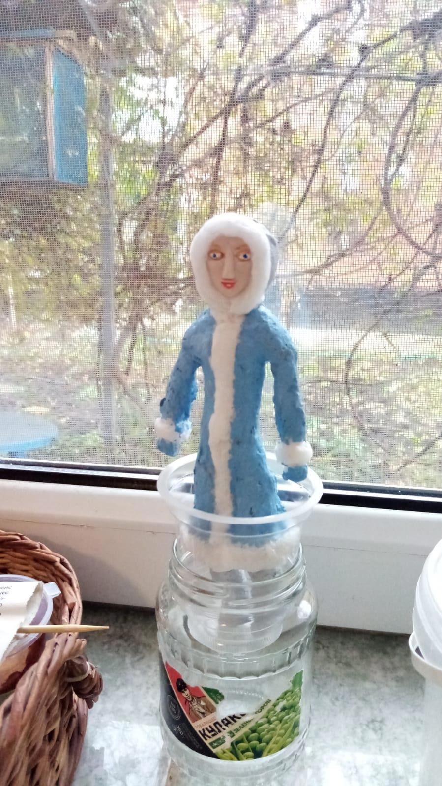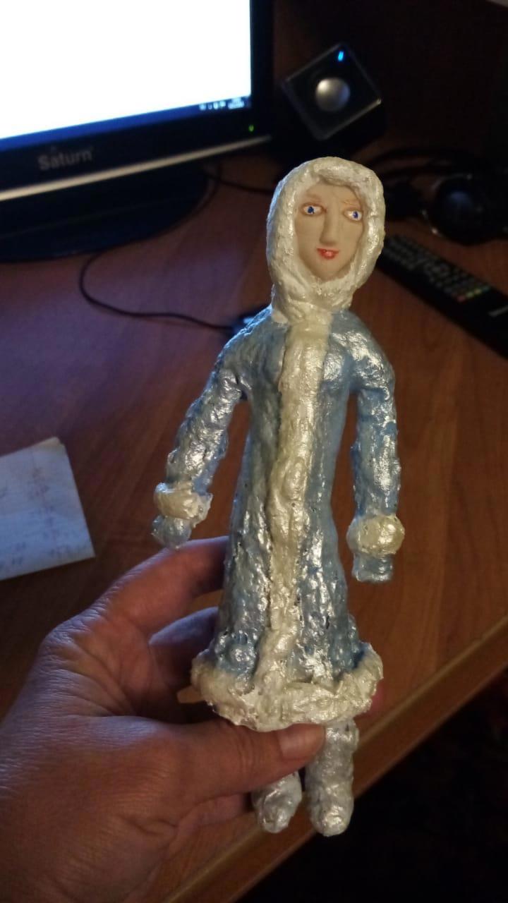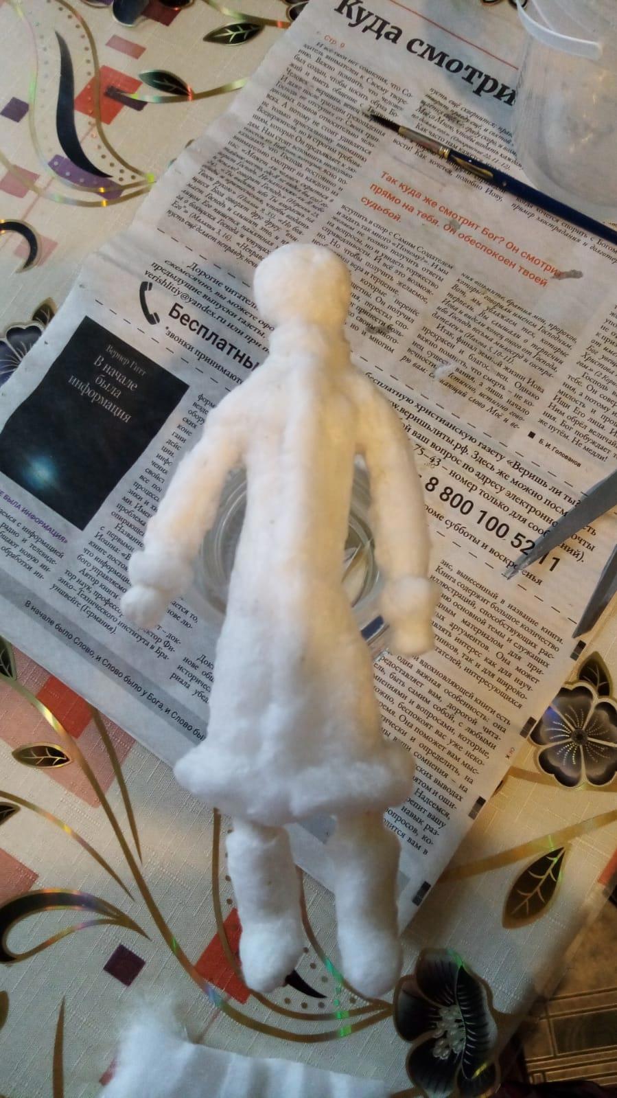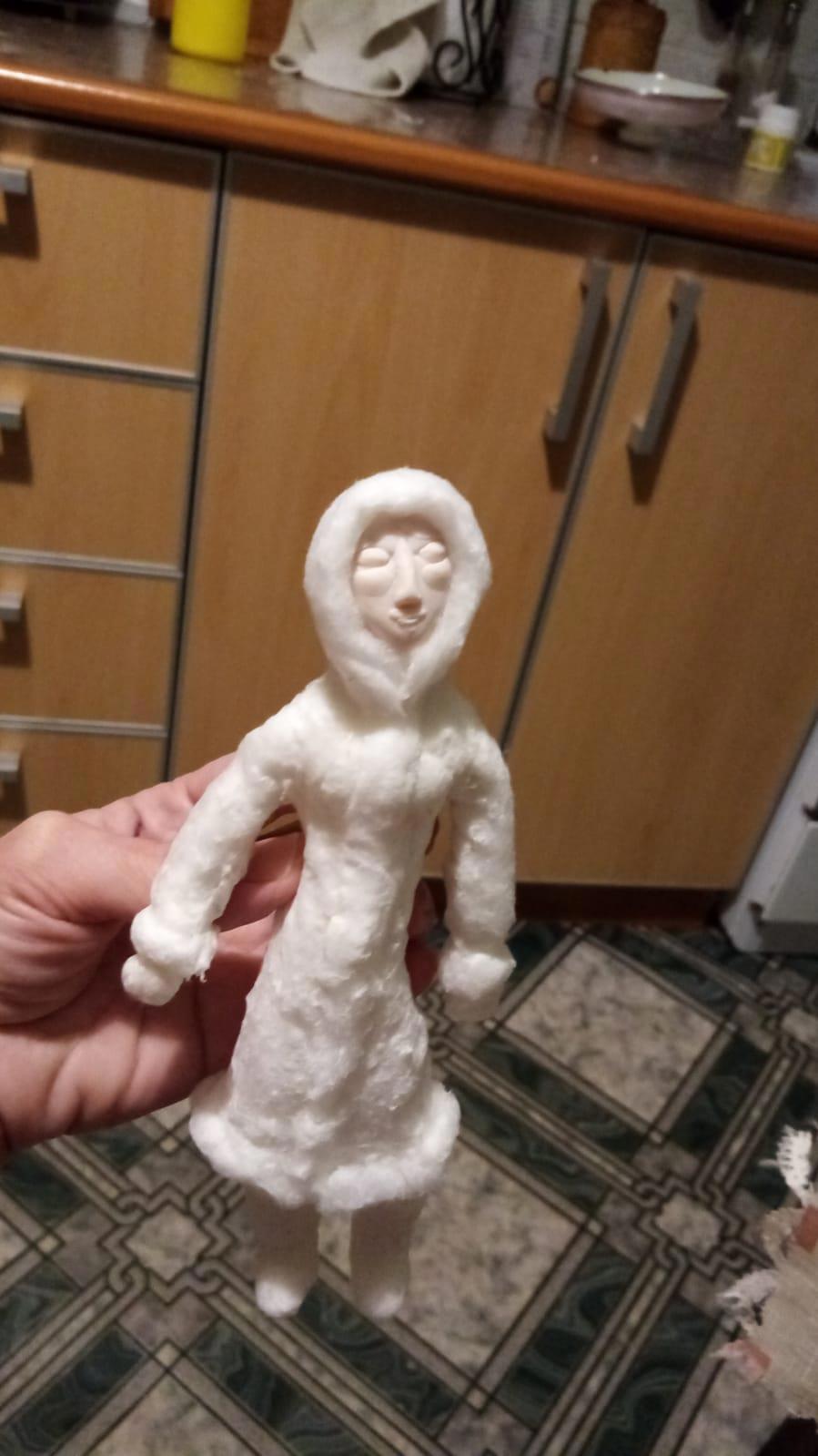 Вот такая девочка в валенках и платьишке, вернее в шубке. Нужно лицо, а я художник от слова "худо", поэтому вытаскиваем ручки их жопки и начинаем лепить личико из полимерной глины.