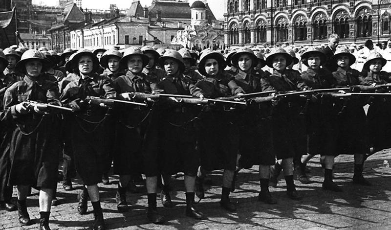 Теперь он морально готовит Иосифа Виссарионовича к обороне страны от будущей войны. (На фото: парад 1938 года)