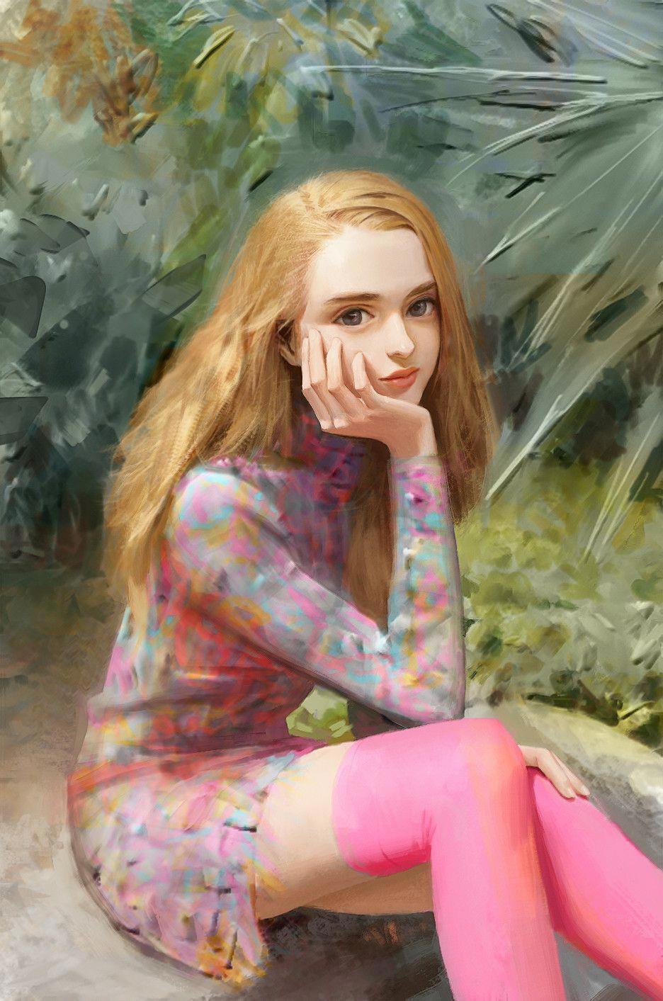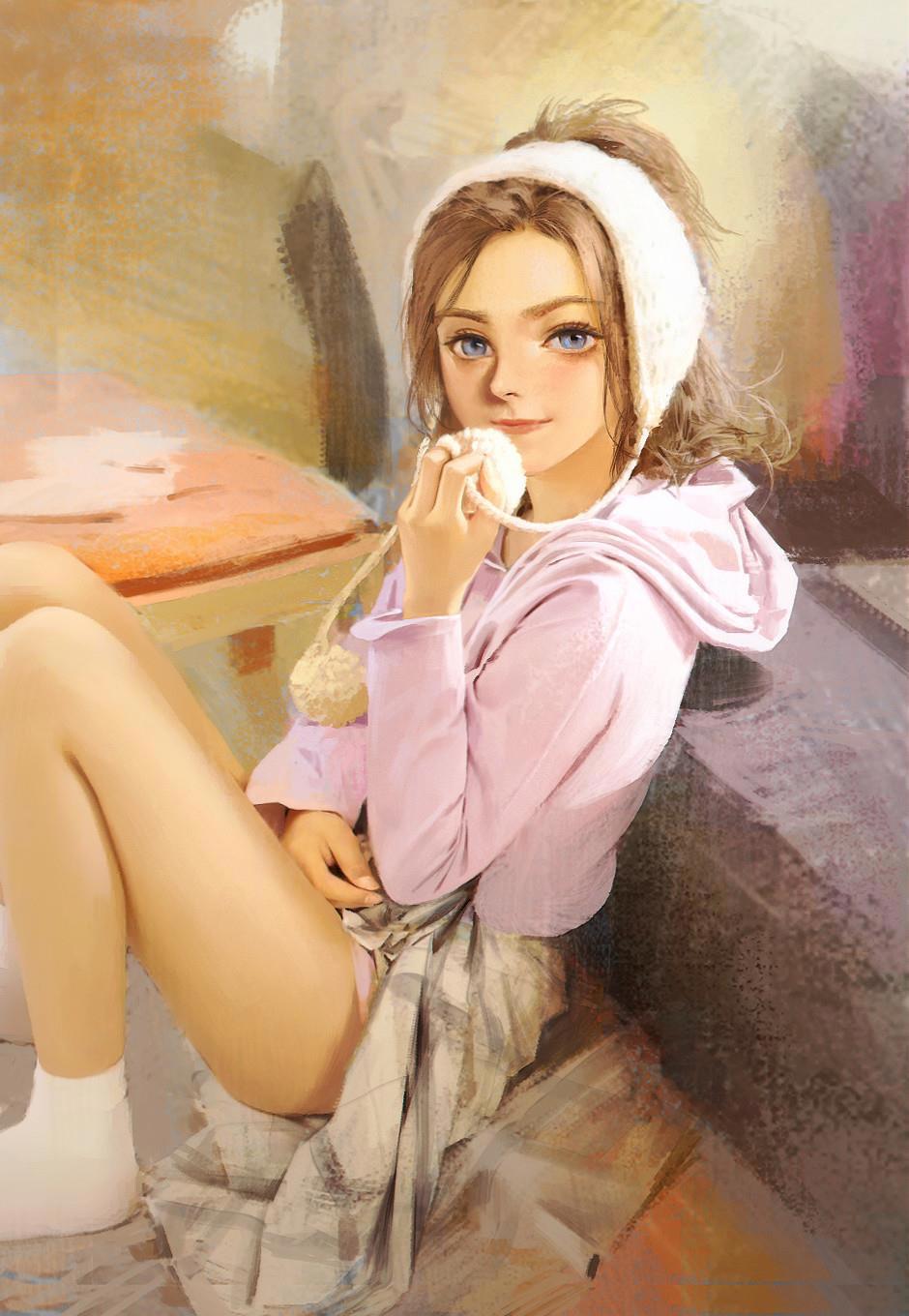 Во всей массе ушасто- рогато- и крылатых очарований мне встретились картины с обычными девушками. Но практически исключительной милоты. Все изображения выполнены в одной манере... но Автора/Авторов вычислить я так и не смог. Если кто знает - подскажите.
