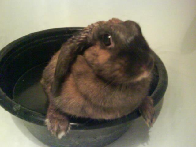 Кролик вообразил, что он так же, как и коты, сможет ловить мух на лету, что и попытался проделать, сидя в ванной.