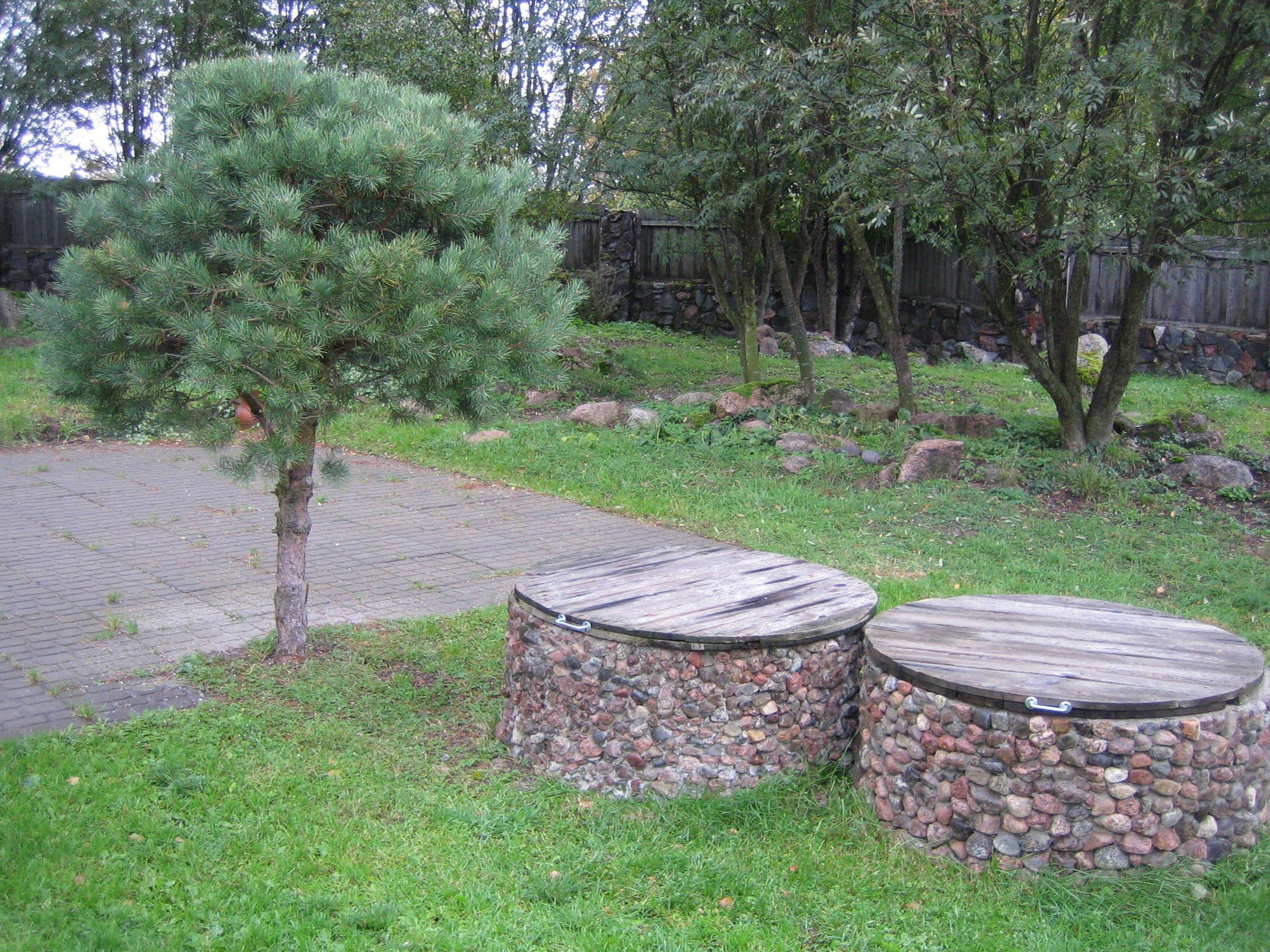Этим летом обложил камушками колодцы и столб поддерживающий кормушку. Вот! Кто видел понравилось, а вам?
