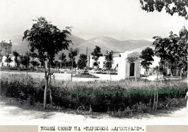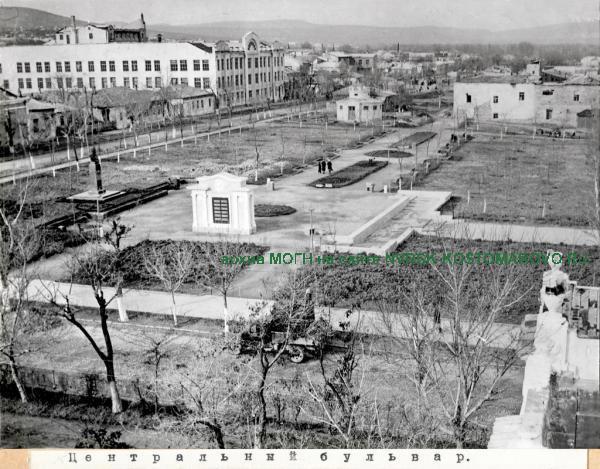 Год боев за город превратил большинство зданий  в развалины. От всех зданий по левую сторону до библиотеки сохранилось только три плюс еще одно здание постройки 1940 года. С правой-все было еще хуже. И тут родилась идея устроить парковую магистраль. то есть не восстанавливать дома между Советов и Скобликова, а создать на протяжении семи кварталов ,от Кутузовской до Новороссийской республики, сплошной сквер. Насколько мне известно. то самое делалось и в других городах. Около 1970 года нечто подобное было сделано по улице Советов и дальше-тоже снесли старые домики и разбили парк. Фактически новый парк как бы продолжает  парковую магистраль,но с большим разрывом меж ними- три квартала.