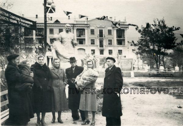 Но были и более значительные композиции. Вот одна из них- "Сталин и Ленин в Горках". Место-там,где к Советов подходит улица Нефтяная, она же позднее улица Леднева. Когда-то на ней жил и я.