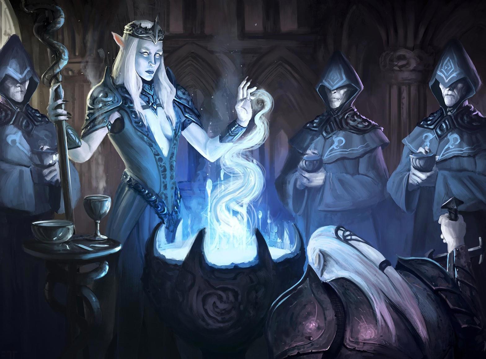Дроу приспособились к жизни под землёй, и то же самое сделала их магия. Кроме использования этой магии для вырезания городов из камня, ею они наделяют своё оружие, создают новые опасные магические предметы и вызывают демонов из Бездны. Заклинатели дроу в высшей степени высокомерны, и никогда не стесняются использовать свою магию в самых отвратительных формах.