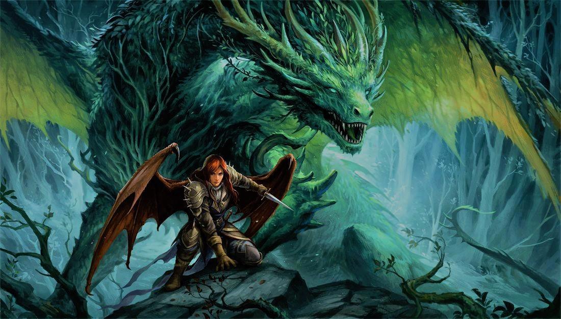 Наиболее изворотливые и коварные из истинных драконов, зелёные драконы используют хитрость и обман, чтобы получить преимущество над врагом. Вредные по натуре и злые до глубины души, они испытывают особое удовольствие, расстраивая планы и совращая добросердечных. В древних лесах, в которых они бродят, зелёные драконы демонстрируют агрессию скорее, чтобы заполучить больше власти и богатст в с наименьшими усилиями, чем ради территории.