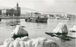 А вот снимок февраля 1954 года.Зима оказалась самая холодная за последние 90 лет.Как видите лед покрыл всю акваторию порта.Порт числился незамерзающим, потому ледокола не имел.В Керчи ледокол держали,в Одессе тоже,а теперь и тут случилось.Правда, ненадолго.