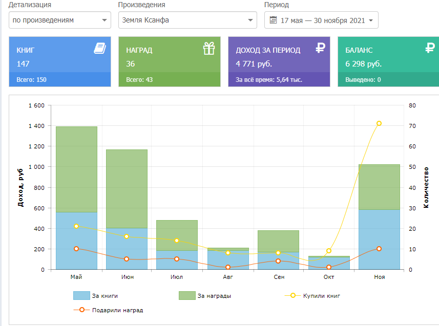 После того, как вы выберете историю и я переведу все заработанные за период продажи романа деньги, предоставлю максимально полный отчет об этом.