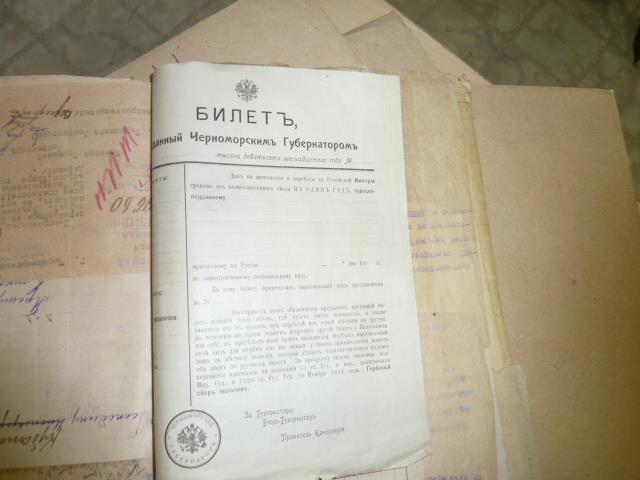 Автор: Сергей СезинИтак, турецкоподданный живет в Черноморской губернии. В 1916 году ему выдается такой вот билет, служащий как вид на жительство,чтобы он мог жить дальше.