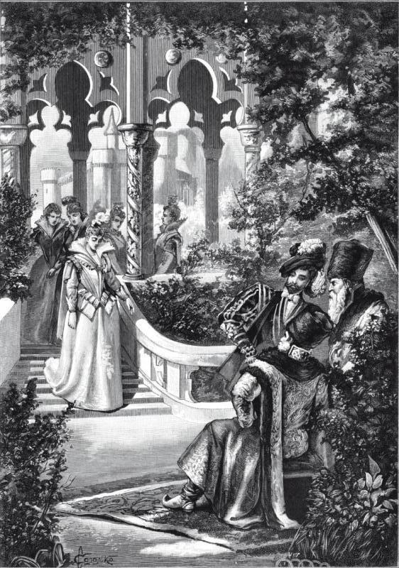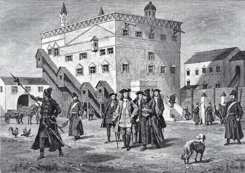 Прогулка посла во дворе Посольского дома в Москве в XVII веке. С оригинала Н. Дмитриева-Оренбургского