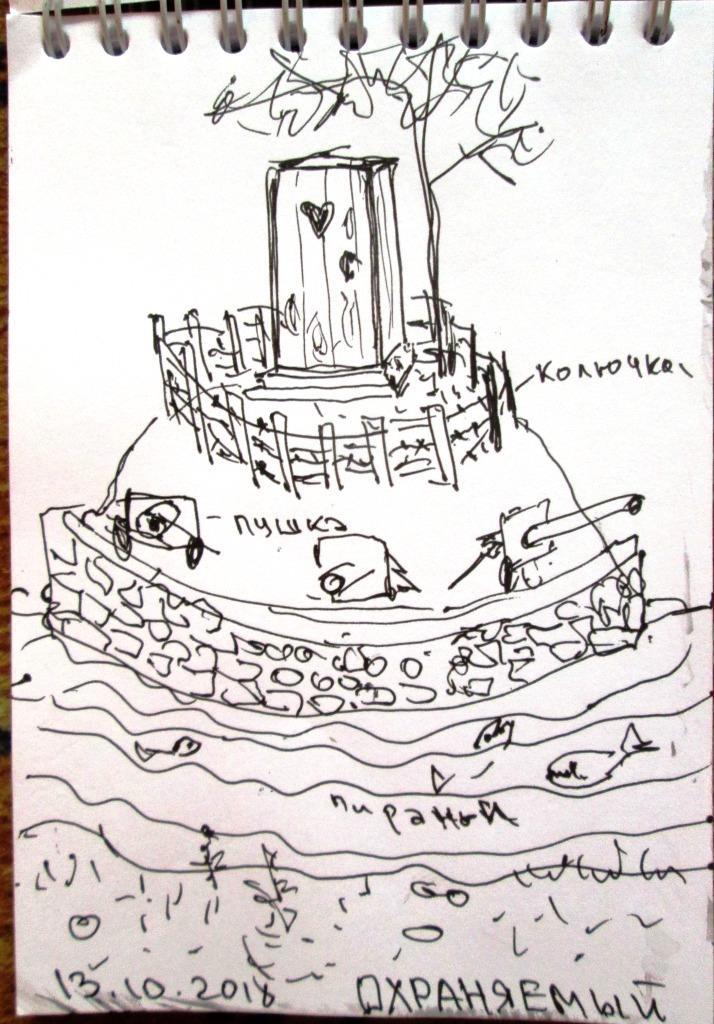 День 13 был отмечен словом, которое имеет два варианта перевода на русский - осторожный и охраняемый. Это близкие понятия, так как осторожный и старается быть охраняемым. Вначале я собиралась нарисовать человечка с телохранителями, но потом родился в голове такой охраняемый объект.