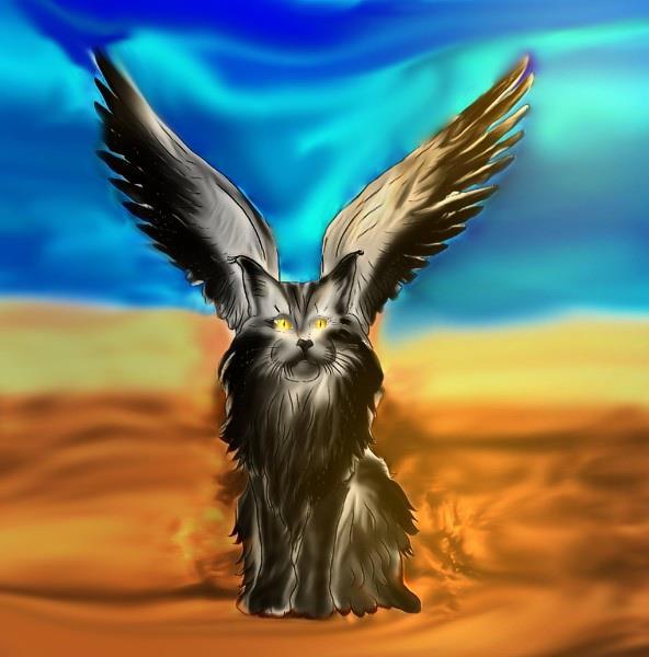 Правда, кто читал КВ, тот знает - кошкай этот нелетучий ( И крылья у него значительно меньше. Генетическая аномалия, ставшая очень выгодной для этого вида кошачьих и поэтому закрепившаяся.