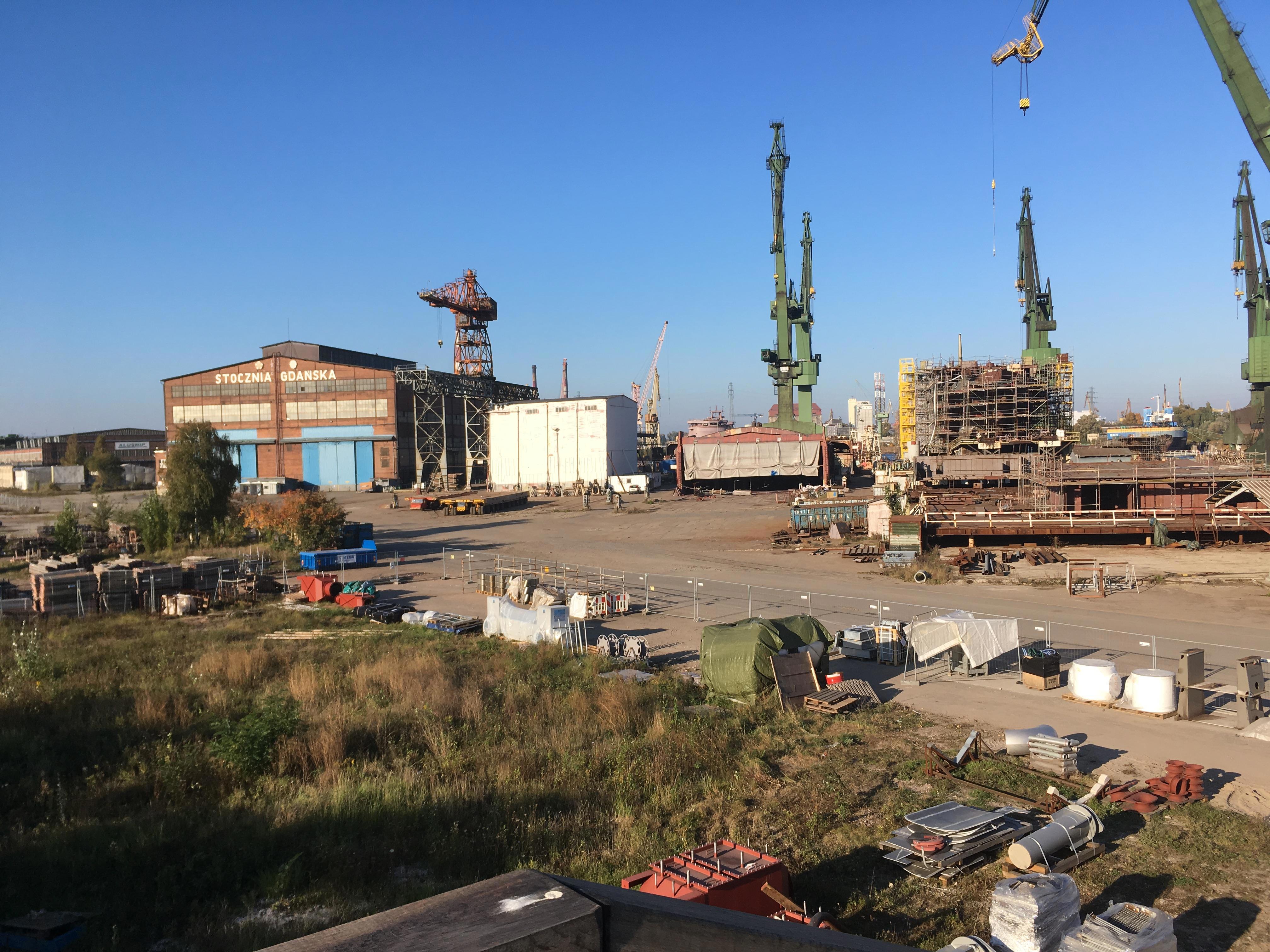 Цех, с крыши которого Агнешка наблюдала за событиями на стапеле (рядом)