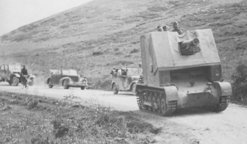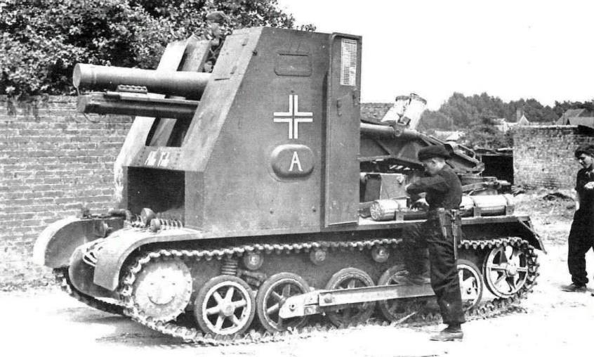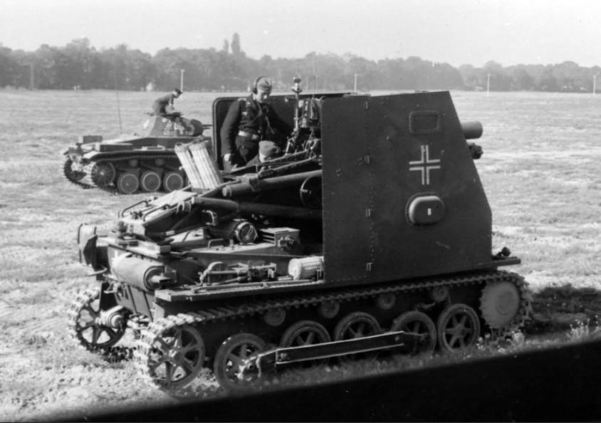 2 15-см тяжелых пехотных орудия на шасси Pz.Kpfw.I (Sd.Kfz.101), каждое с 1 пистолетом-пулеметом