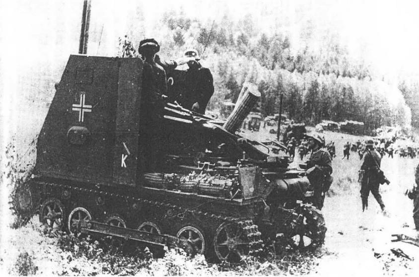 6 15-см тяжелых пехотных орудий на броневых самоходных лафетах