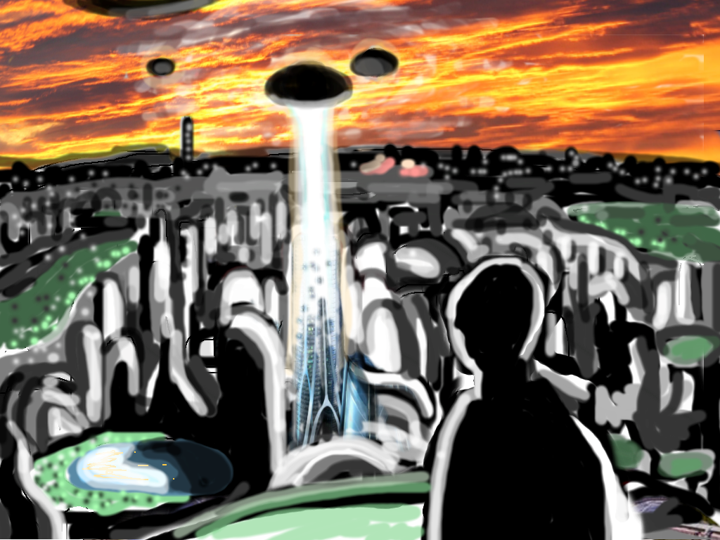 Над городом шли тяжёлые десантные шлюпки. Сразу четыре. Чёрные, матовые, пожирающие последние лучи заходящего солнца.
