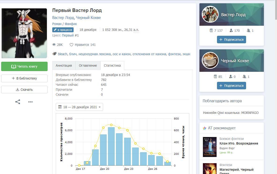 Вот сегодня наткнулся на книгу «Первый Вастер Лорд». Даже еще не смотрел, о чем она) Но увидел, что за дней десять книга набрала почти 30К просмотров и около 800 библиотек. Я хотел уже было проинспектировать произведение на поиск секретов успеха… Но меня вдруг смутило другое.