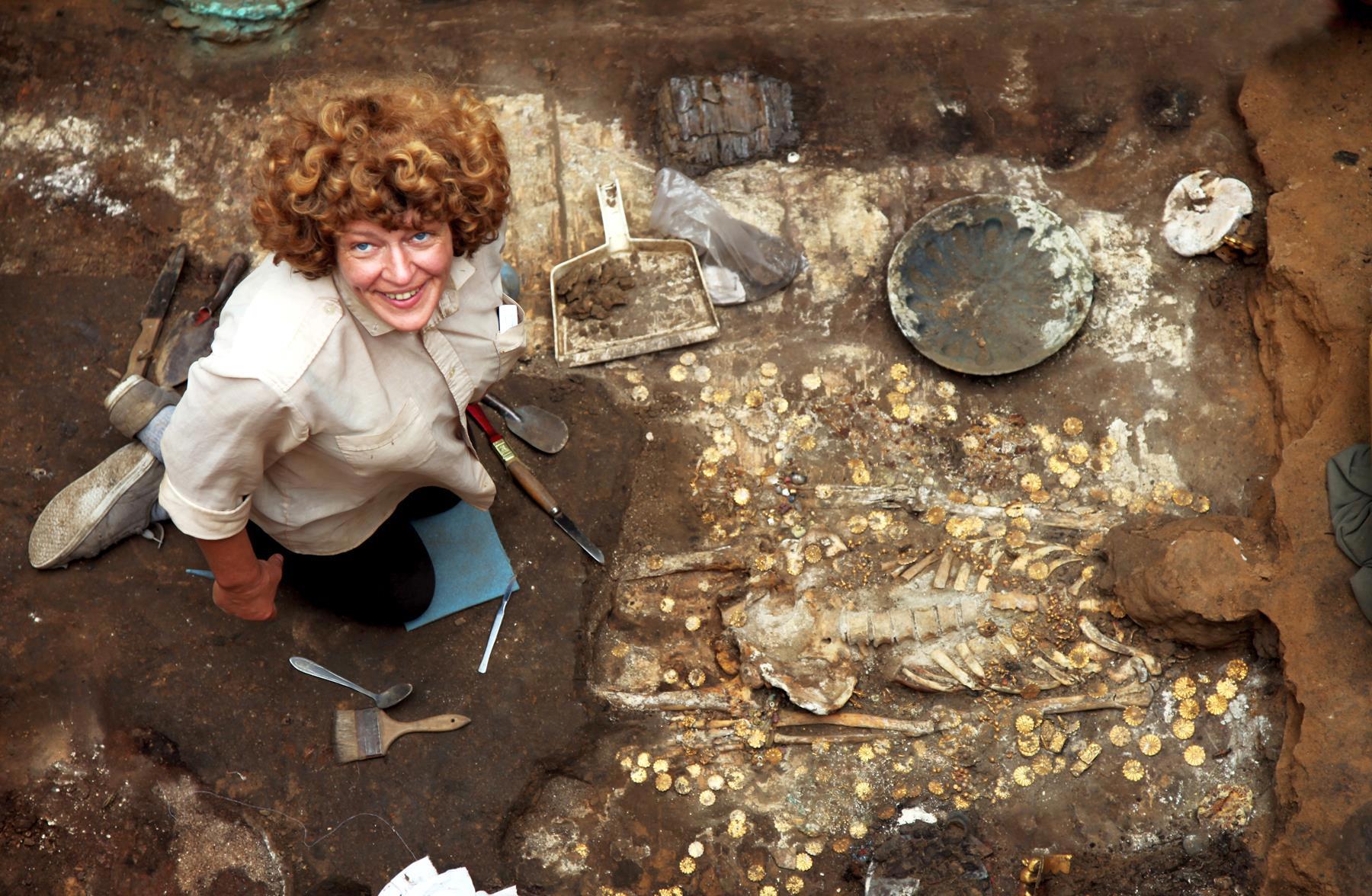 Вот свежераскопанный курган в Китае. Оцените объём земляных работ и деревянный «дом» для покойного: