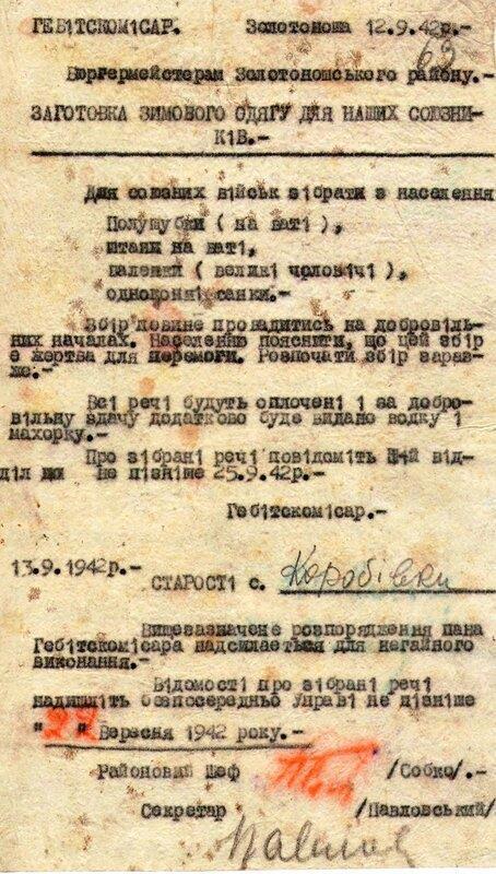 Гебитскомиссар. Золотоноша. 12.9.42 г. -