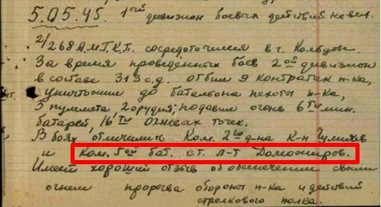 А вот и упоминание про моего деда, своего рода привет из 1945-го.