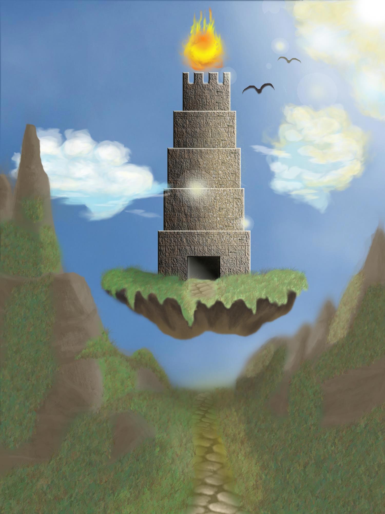 Этап 3: небо, горы, башня, о уже что-то вырисовывается