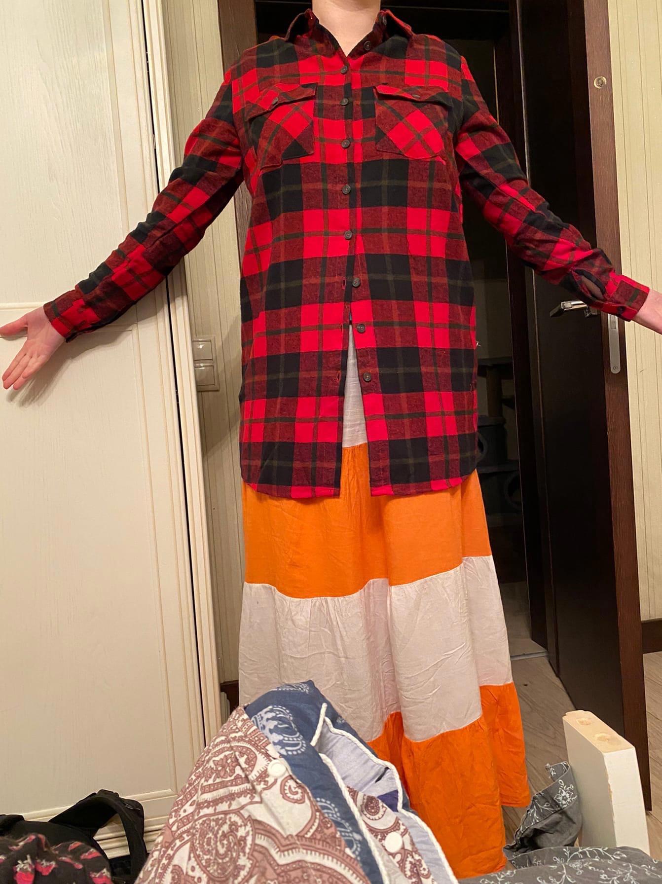 Теплая, мягонькая клетчатая рубашка, опять же спасибо глазастому соавтору: