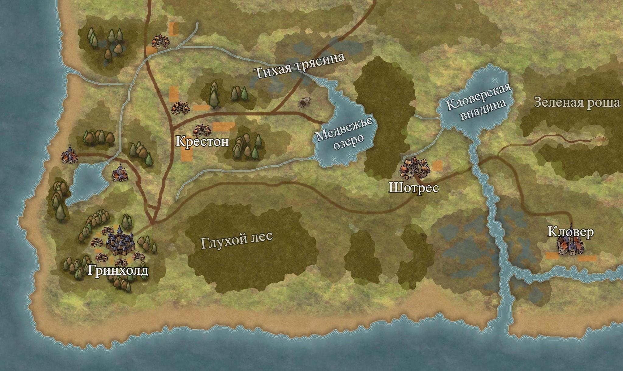 Было у меня сегодня настроение перенести часть карты, что рисовалась вручную к первой книге в компьютерный вариант. Небольшой отрывок, что охватывает лишь пригород Гринхолда и дорогу к Кромвилу. "Великанский перевал", дворфийский город Гранбу, расположенный вблизи Строувера находятся дальше и будут изображены отдельно. (Я второй раз рисовала карту и впервые за долгое время попыталась изобразить что-то с помощью мышки 😅